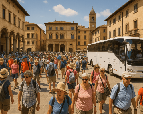You live in a quiet Italian town of just 2,500 people. Life moves at an easy pace—until a giant double-decker bus unloads 55 tourists into the square. The air fills with noise, selfie sticks rise like antennae, and the little café, used to serving a couple of guests an hour, suddenly scrambles to handle a flood of orders. The town’s charm is swallowed by the crowd.